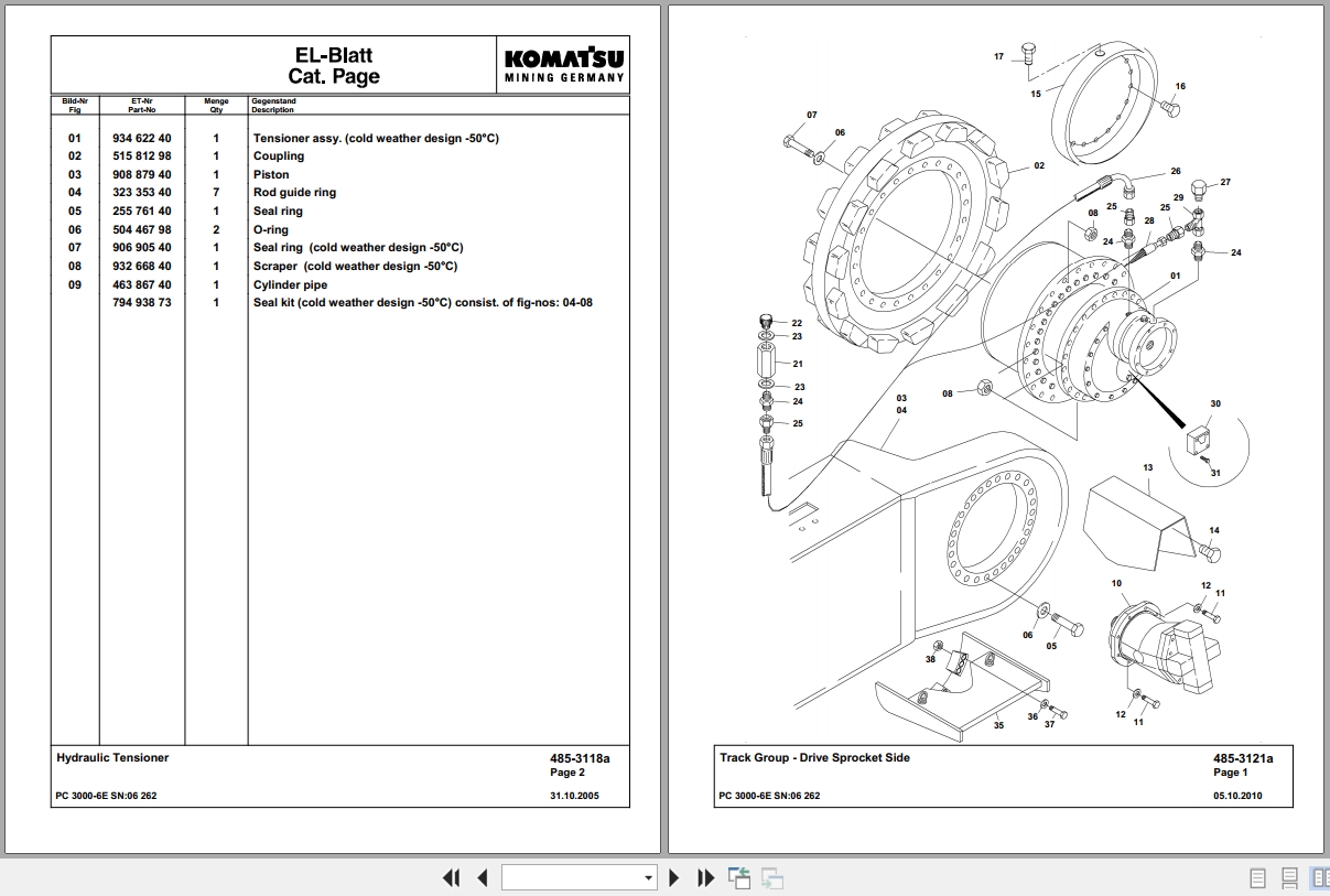 The Bookmarks of Komatsu PC3000-6E 06262 Spare Parts Catalog:
