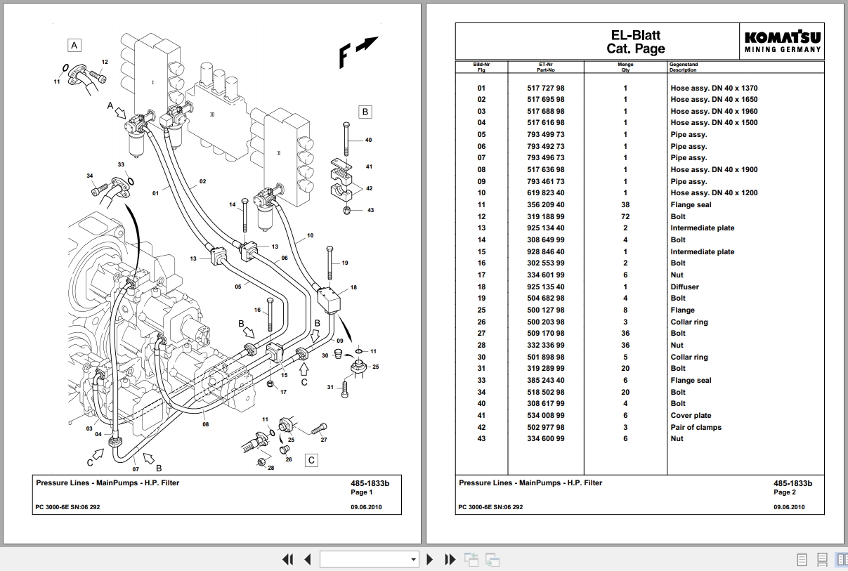 The Bookmarks of Komatsu PC3000-6E 06292 Spare Parts Catalog: