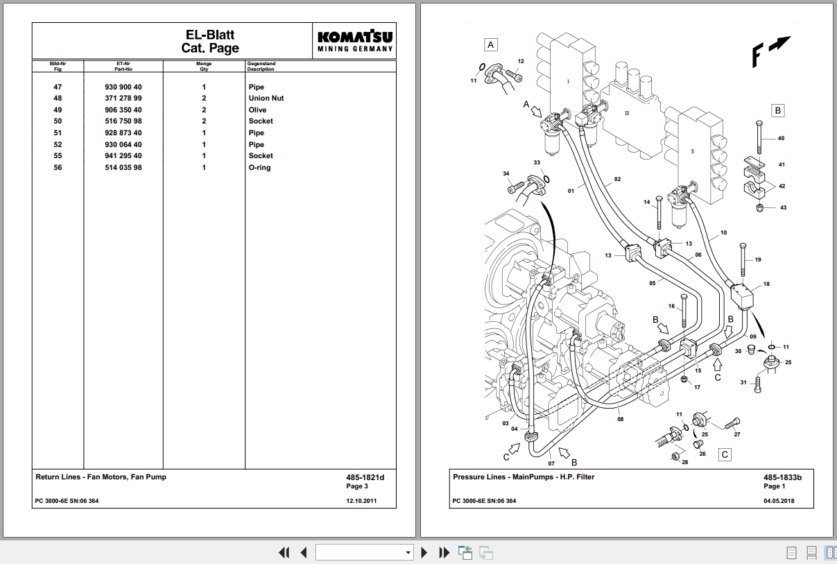 The Bookmarks of Komatsu PC3000-6E 06364 Spare Parts Catalog: