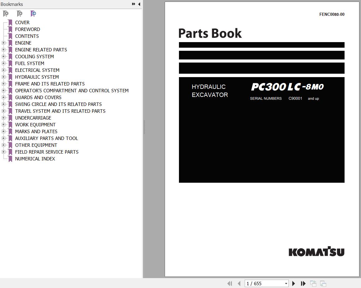 Komatsu PC300LC-8M0 Parts Book FENC0080-00