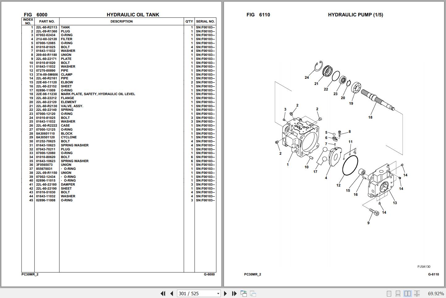 Komatsu PC30MR-2 F00103 Up Spare Parts Catalog