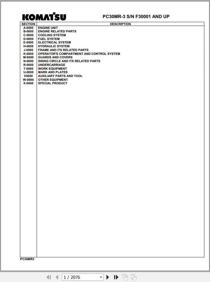 Komatsu PC30MR-3 F30001 And Up Spare Parts Catalog