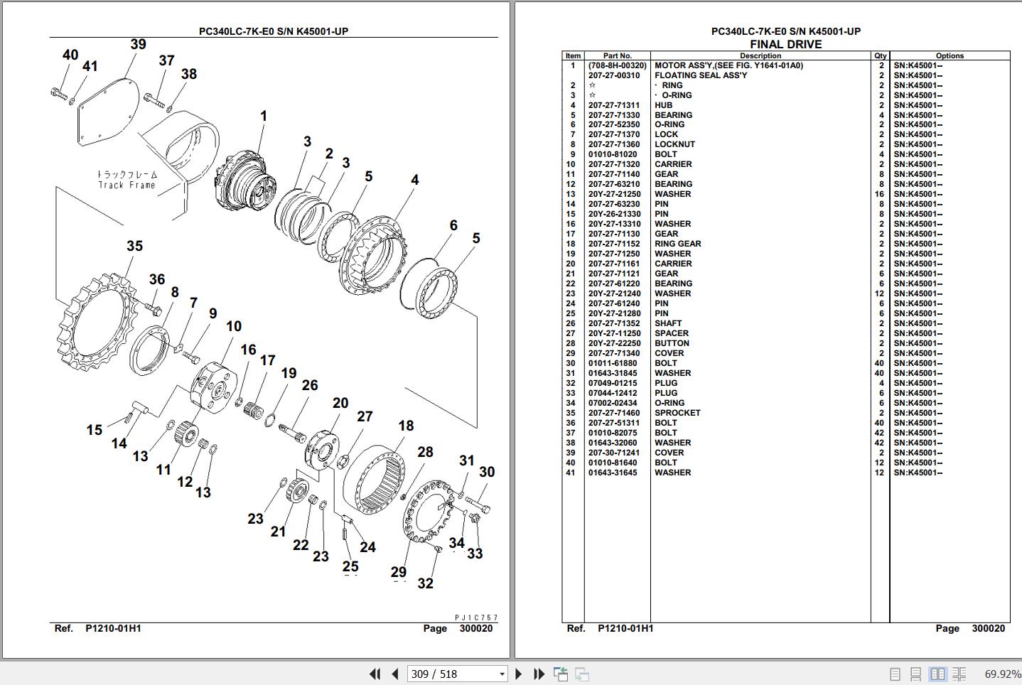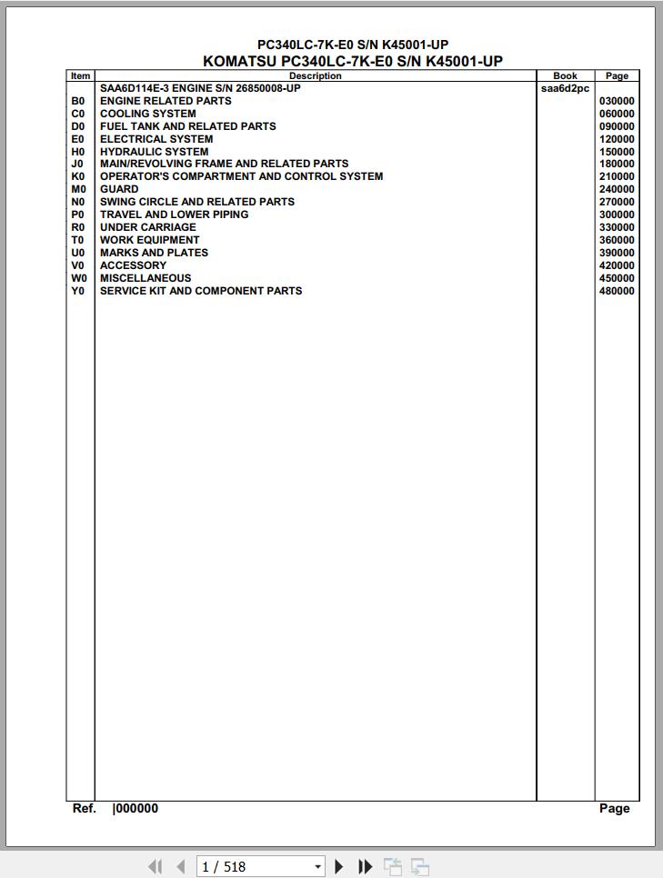Komatsu PC340LC-7K-E0 K45001 Up Spare Parts Catalog