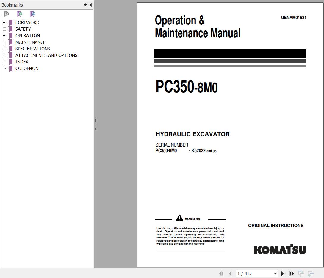 The Bookmarks of Komatsu PC350-8M0 Hydraulic Excavator Operation & Maintenance Manual: