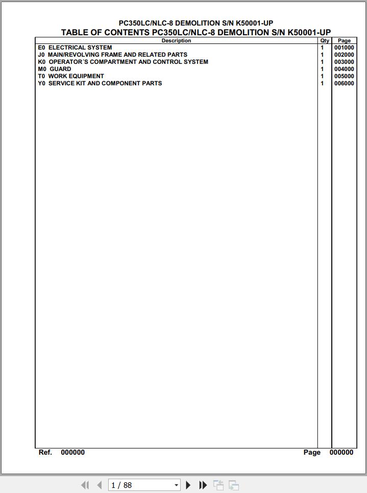 Komatsu PC350LC 350NLC-8 Demolition K50001 Up Spare Parts Catalog