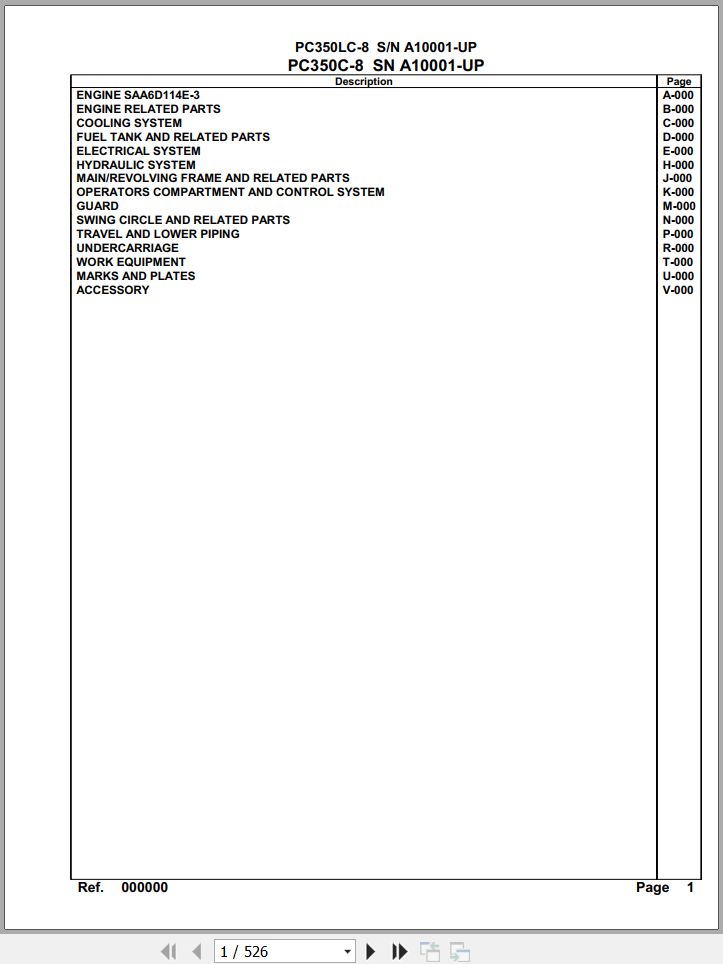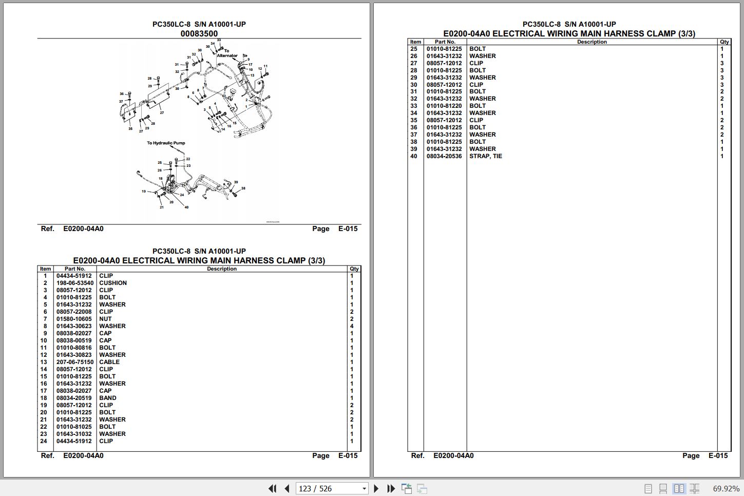 Komatsu PC350LC-8 A10001 Up Spare Parts Catalog