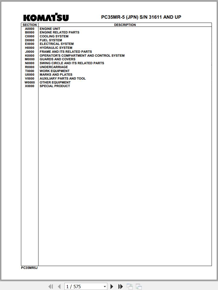 The Bookmarks of Komatsu PC35MR-5 JPN 31611 And Up Spare Parts Catalog: