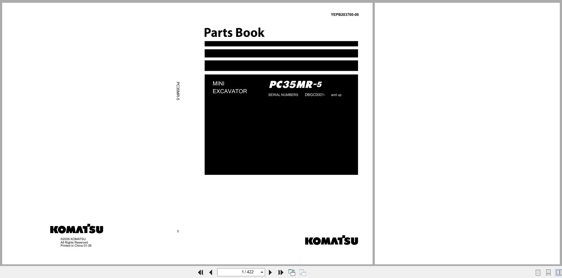 Komatsu PC35MR-5 Parts Book YEPB203700-00 2026