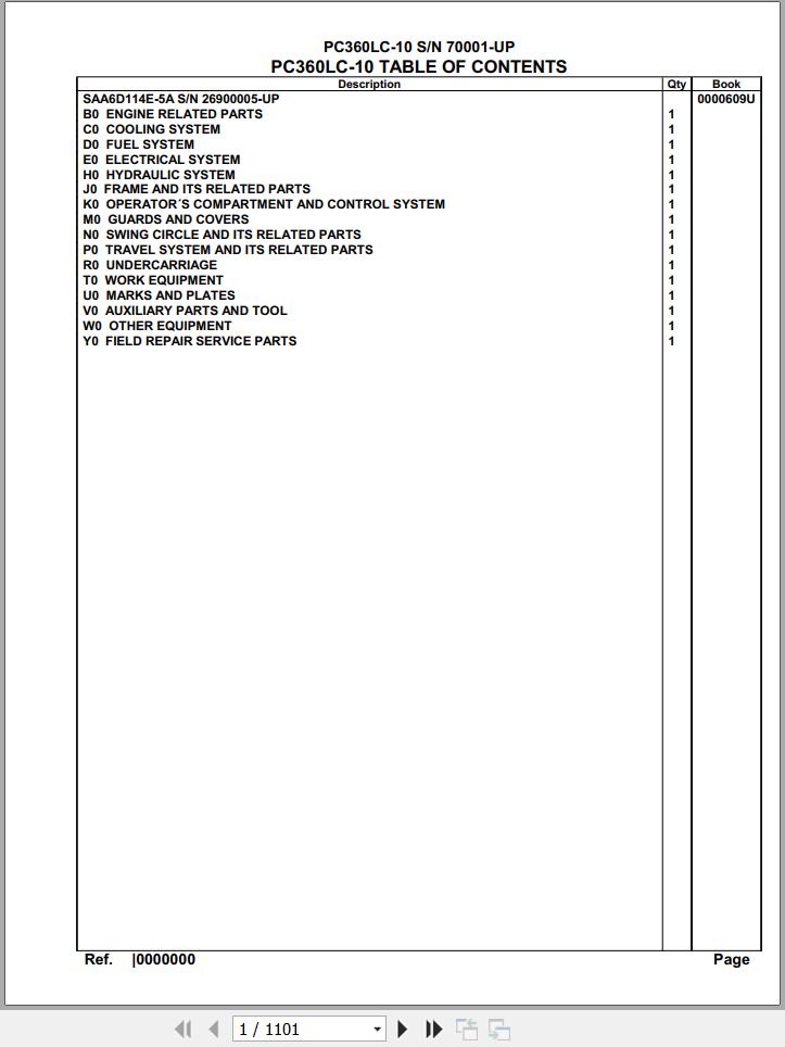 The Bookmarks of Komatsu PC360LC-10 70001 Up Spare Parts Catalog:
