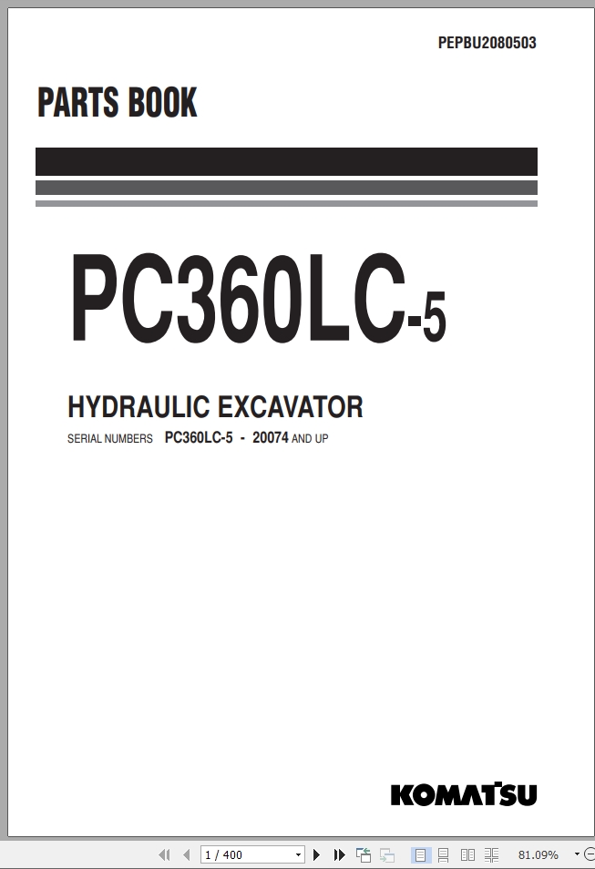 Komatsu PC360LC-5 Part Book PEPBU2080503