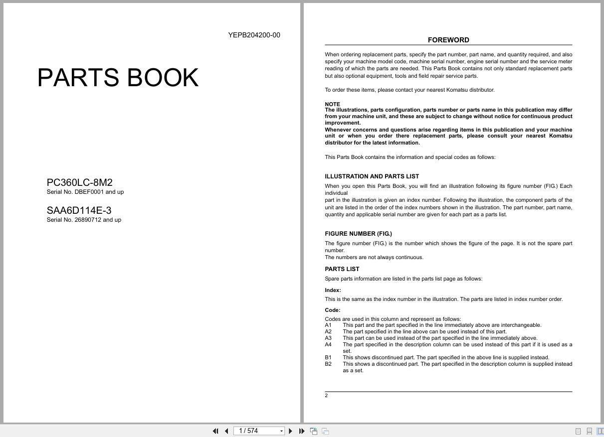 Komatsu PC360LC-8M2 Parts Book YEPB204200-00 2026