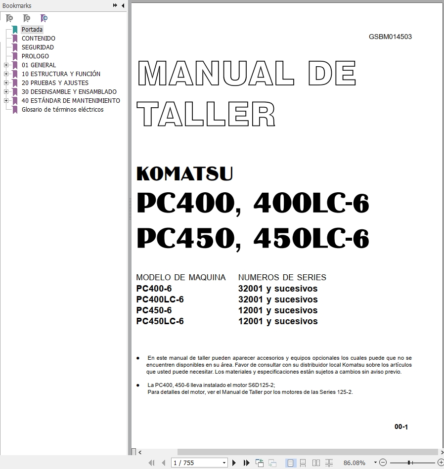The Bookmarks of Komatsu PC400 PC400LC-6 PC450 PC450LC-6 Excavadora Hidráulicas Manual de Taller: