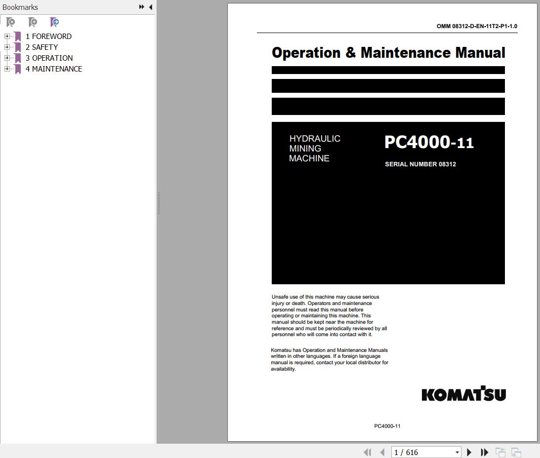 Komatsu PC4000-11 Operation & Maintenance Manual OMM 08312-D-EN-11T2-P1-1.0