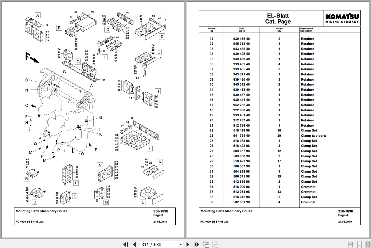 The Bookmarks of Komatsu PC4000-6E 08208 Spare Parts Catalog: