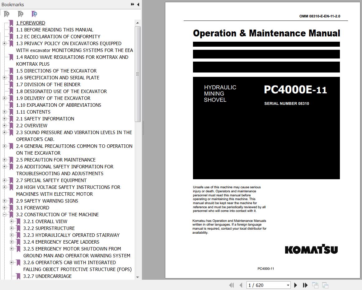 Komatsu PC4000E-11 Operation & Maintenance Manual OMM 08310-E-EN-11-P1-2.0