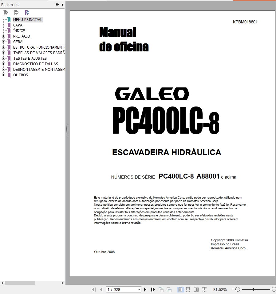 The Bookmarks of Komatsu PC400LC-8 Escavadeira Hidráulica Manual de Oficina:
