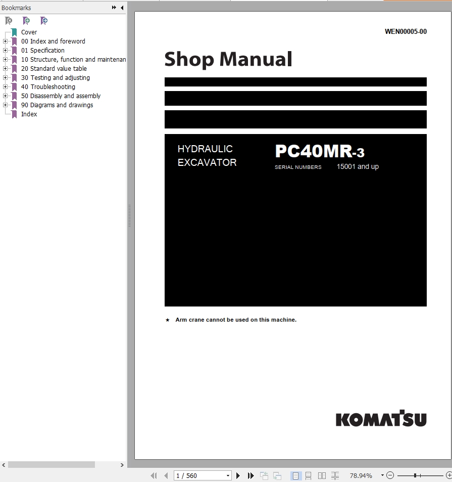 Komatsu PC40MR-3 Shop Manual WEN00005-00