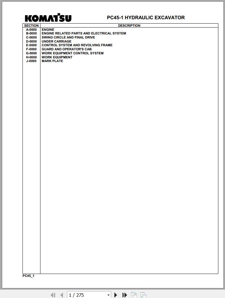 Komatsu PC45-1 F1001 Up Spare Parts Catalog