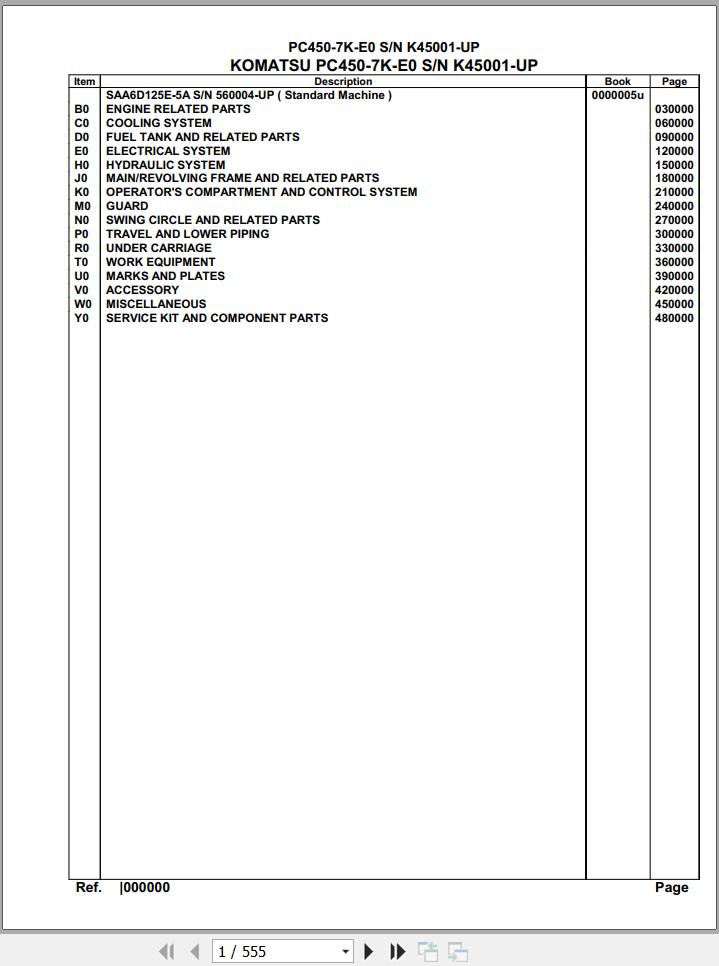 Komatsu PC450-7K-E0 K45001 Up Spare Parts Catalog