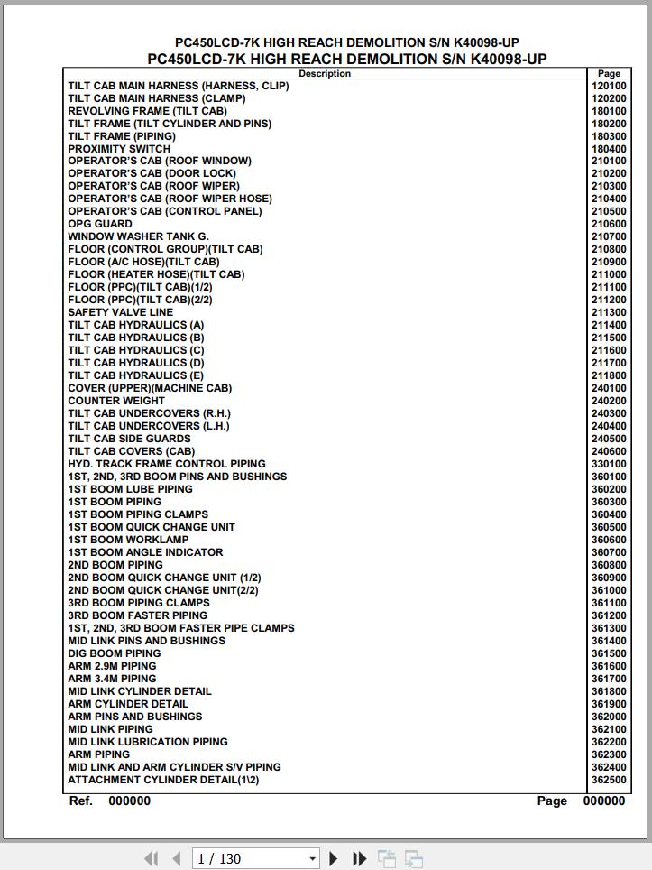The Bookmarks of Komatsu PC450LCD-7K High Reach Demolition K40098 Up Spare Parts Catalog: