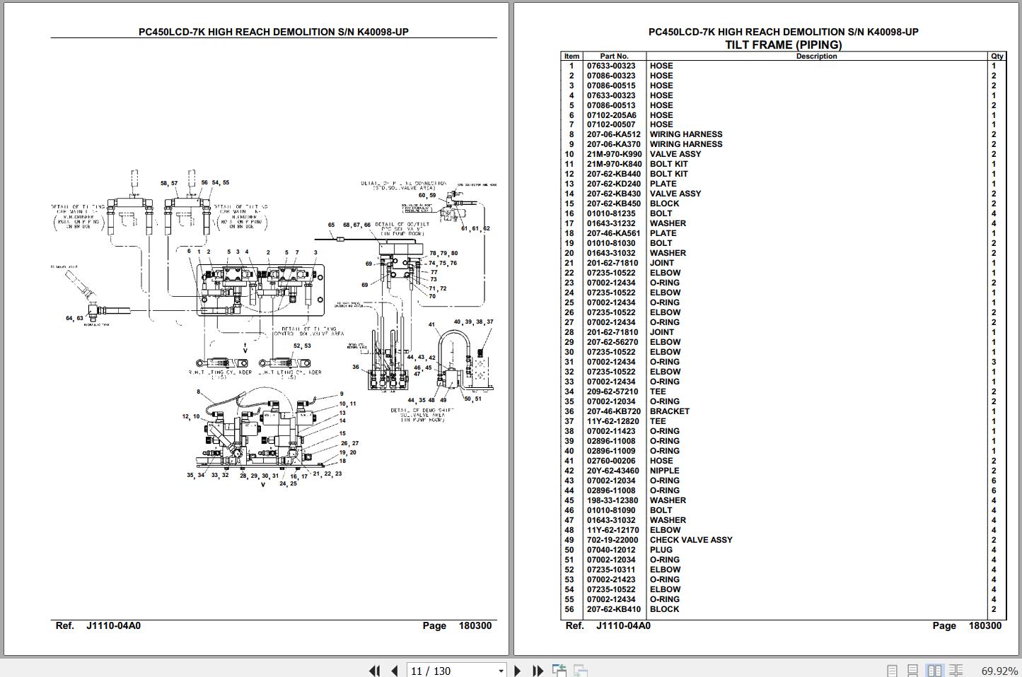 Komatsu PC450LCD-7K High Reach Demolition K40098 Up Spare Parts Catalog