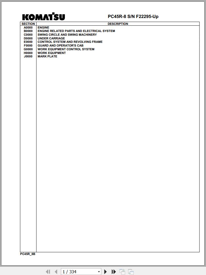 Komatsu PC45R-8 F22295 Up Spare Parts Catalog