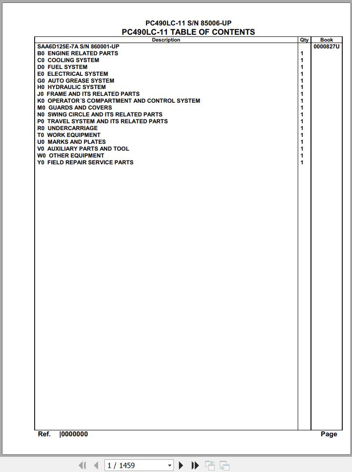 The Bookmarks of Komatsu PC490LC-11 85006 Up Spare Parts Catalog: