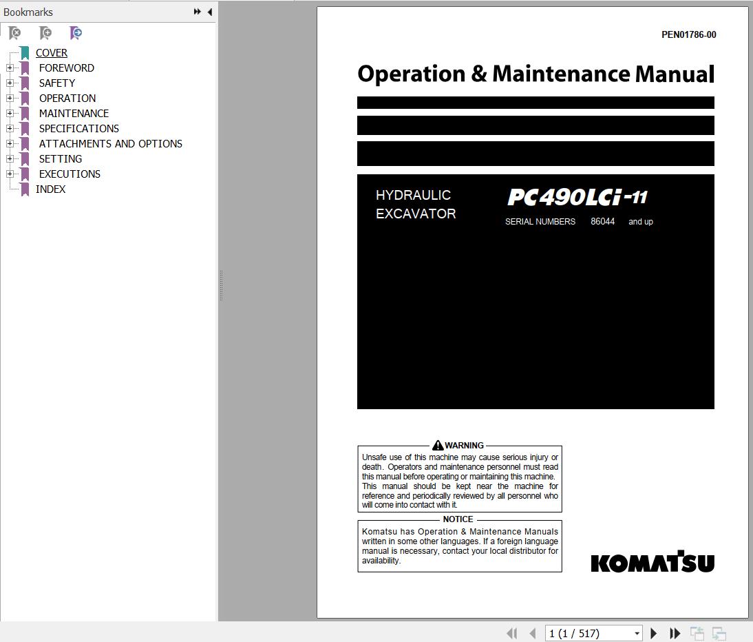 Komatsu PC490LCI-11 Operation & Maintenance Manual PEN01786-00