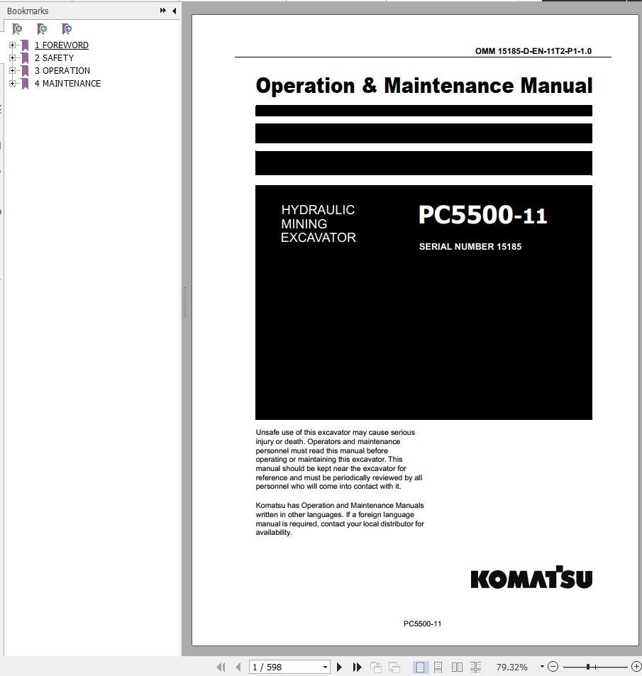 Komatsu PC5500-11 Operation & Maintenance Manual OMM 15185-D-EN-11T2-P1-1.0