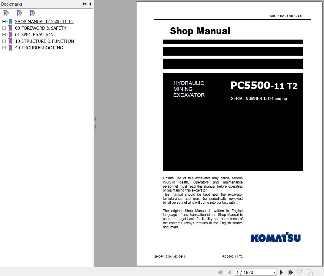 Komatsu PC5500-11 T2 Shop Manual SHOP 15191-xD-GB-0