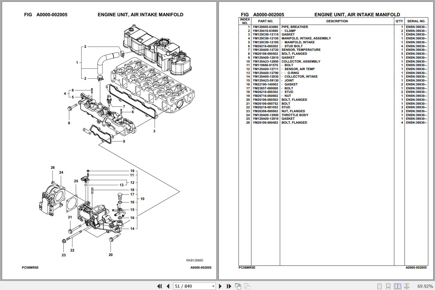 Komatsu PC58MR-5E0 F60001 And Up Spare Parts Catalog