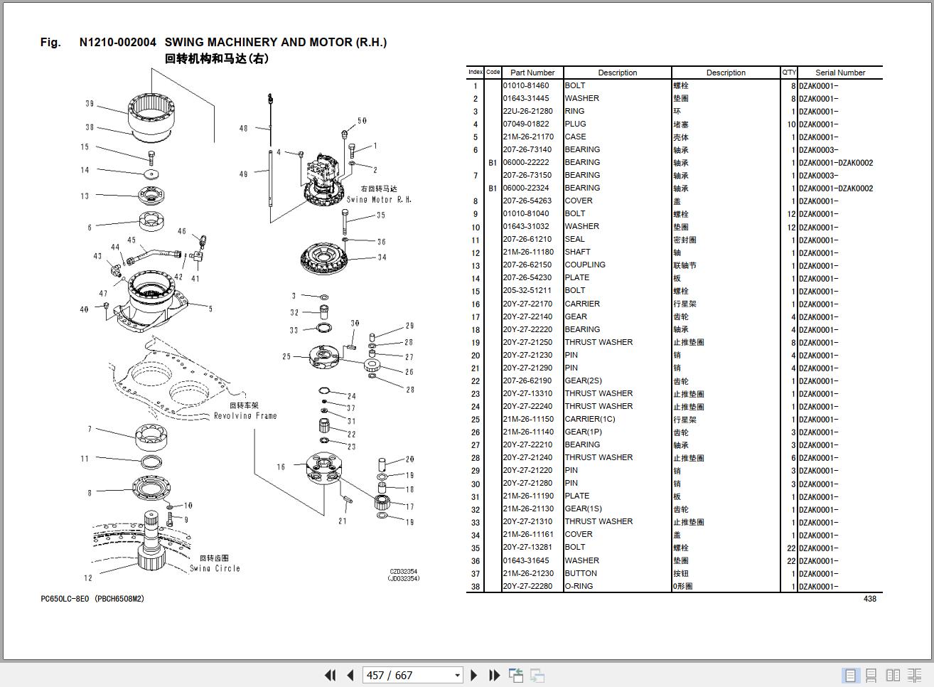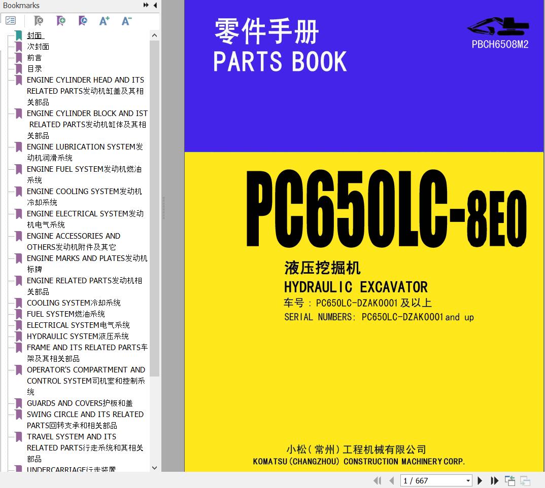 Komatsu PC650LC-8E0 DZAK0001-UP Parts Book PBCH6508M2