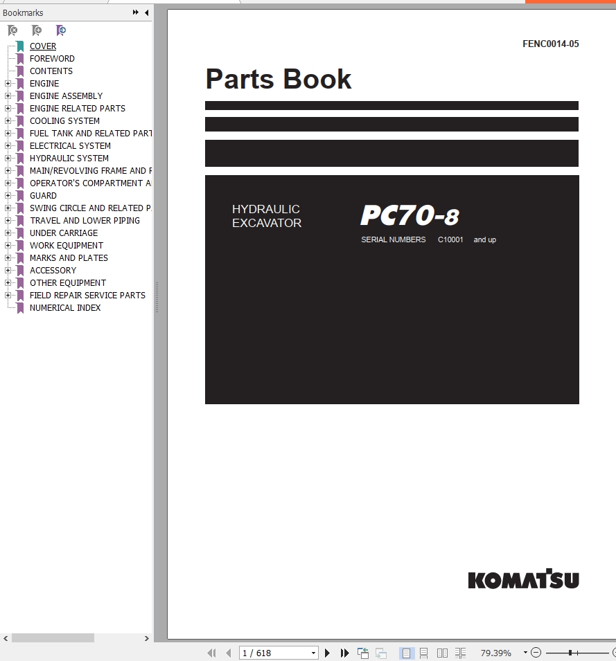 The Bookmarks of Komatsu PC70-8 Crawler Excavators Part Book: