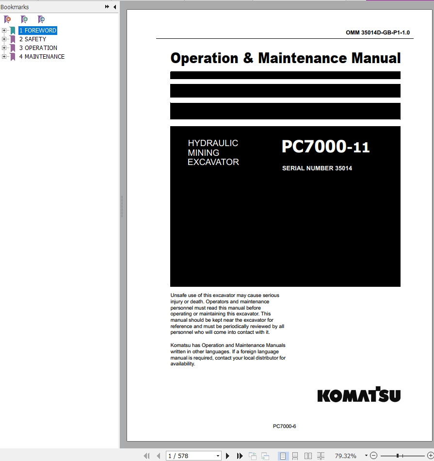 Komatsu PC7000-11 Operation & Maintenance Manual GZEAM35014-1