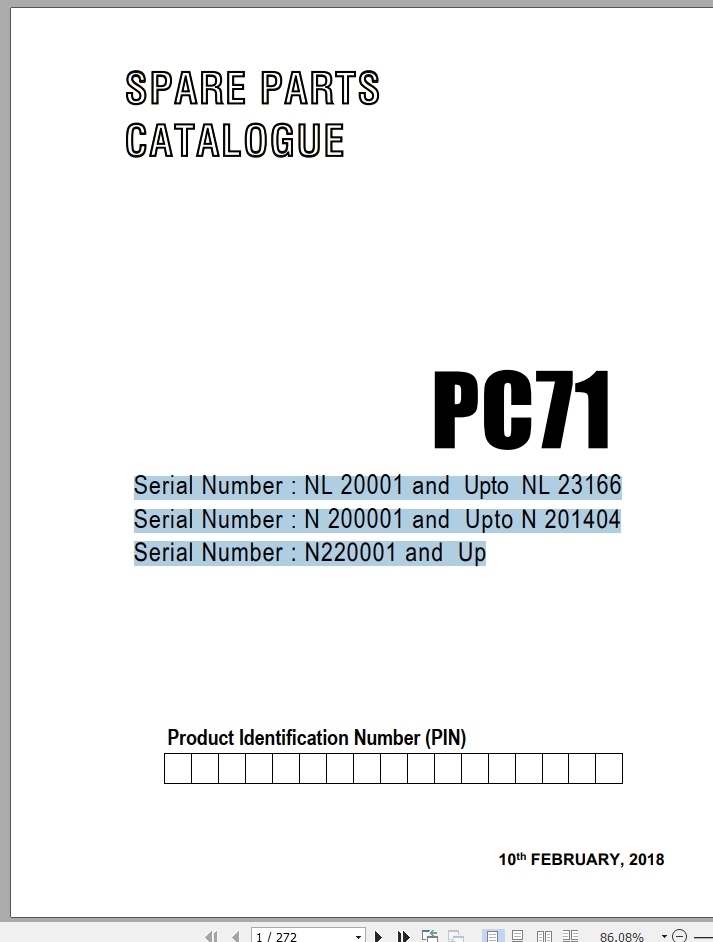 Komatsu PC71 Part Book KIPLINDPRBA0001