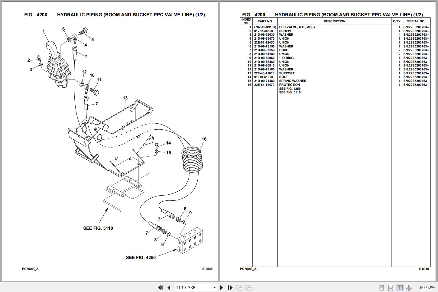 Komatsu PC75R-2 USA 22E5200763 Up Spare Parts Catalog