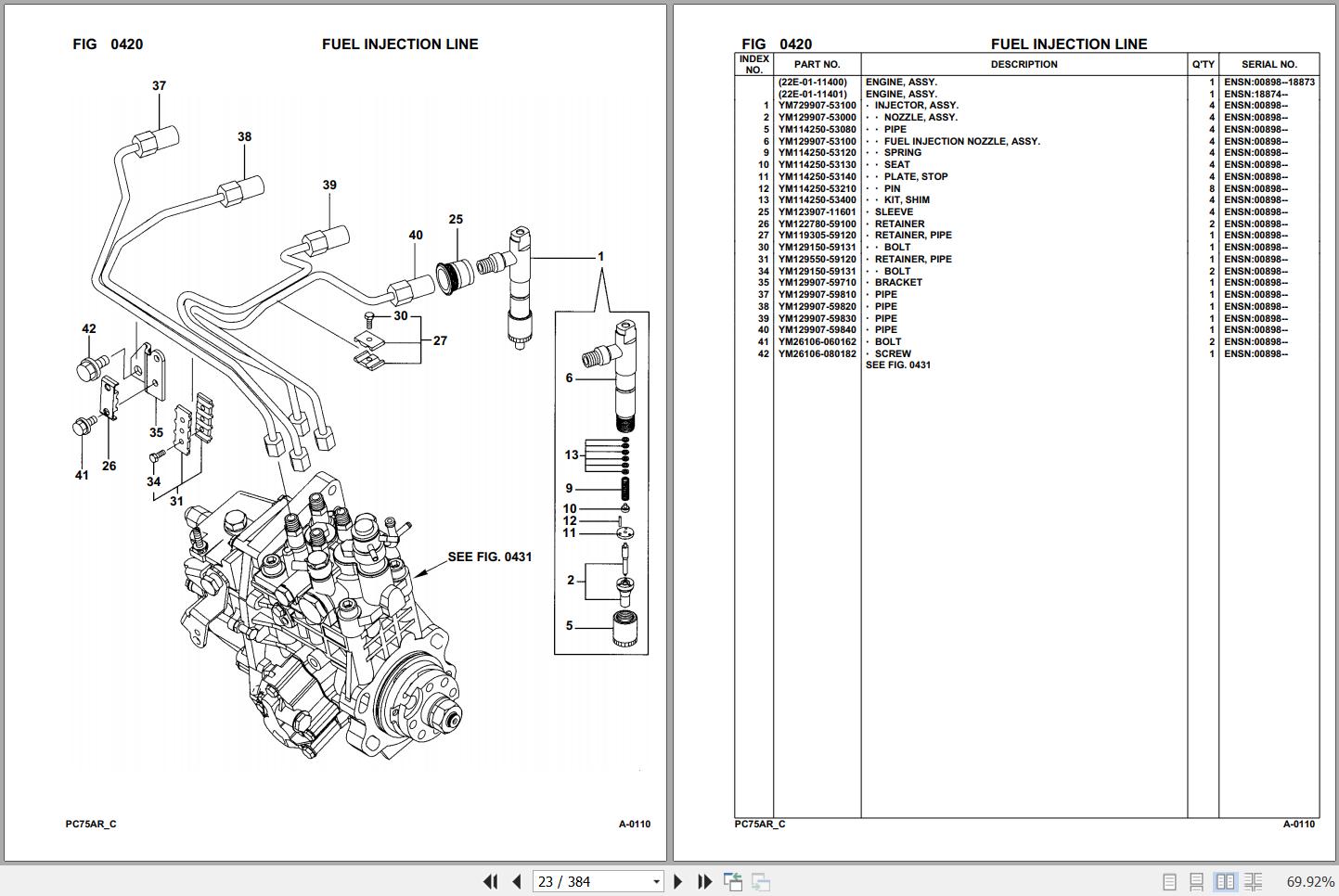 Komatsu PC75R-2 USA 22E5210500 Up Spare Parts Catalog