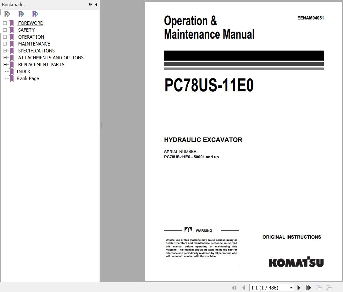 Komatsu PC78US-11E0 Operation & Maintenance Manual EENAM04051