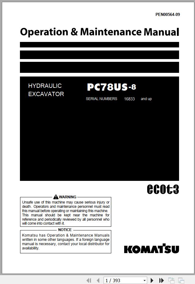 Komatsu PC78US-8 Operation & Maintenance Manual PEN00564-09