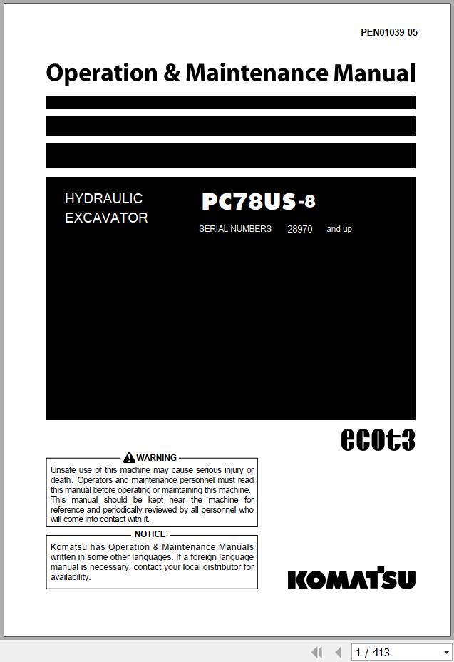 Komatsu PC78US-8 Operation & Maintenance Manual PEN01039-05