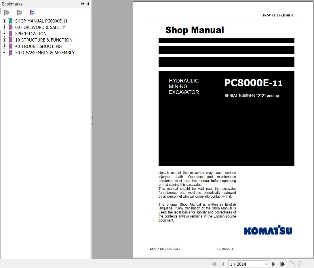 Komatsu PC8000E-11 Shop Manual SHOP 12121-xE-GB-0