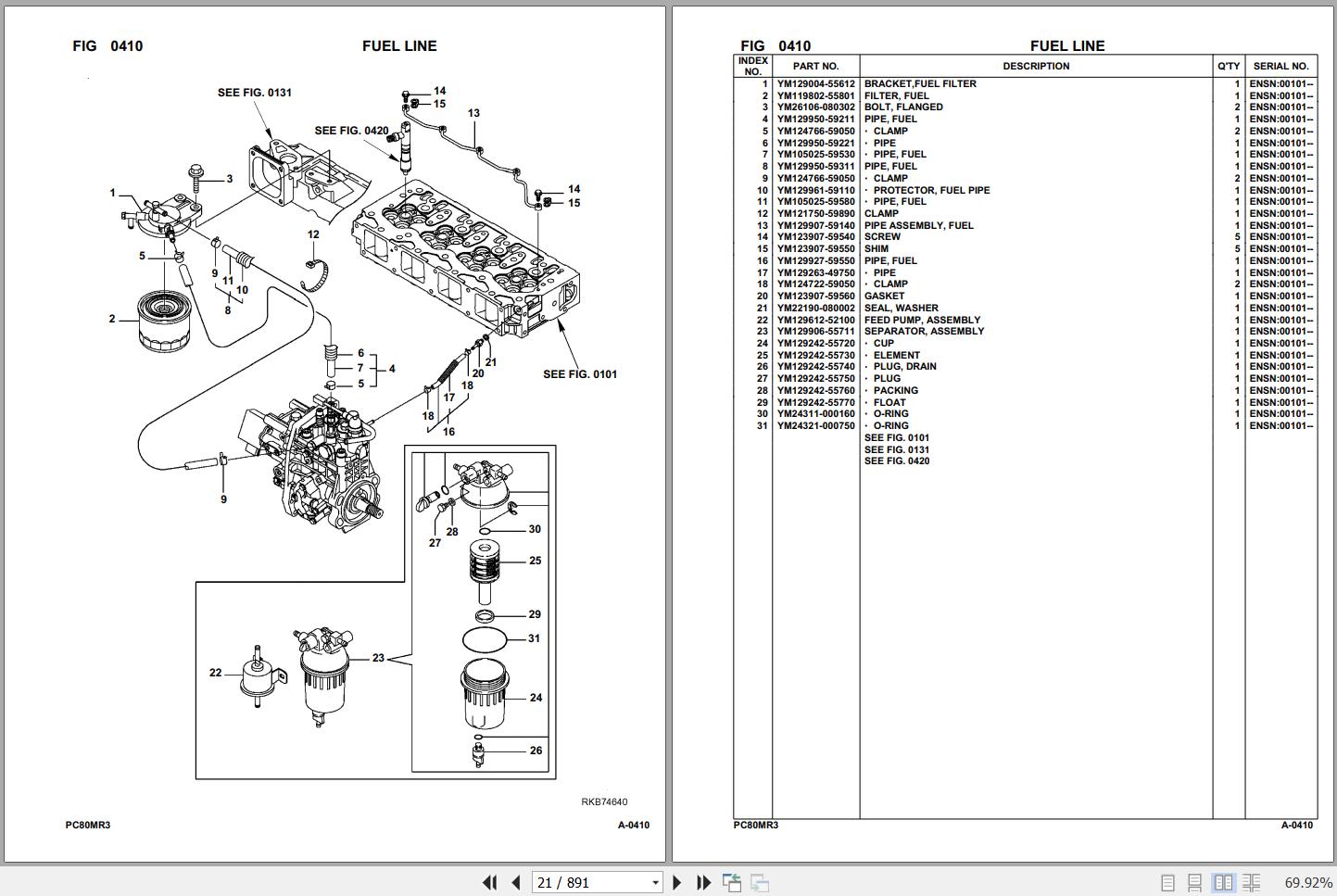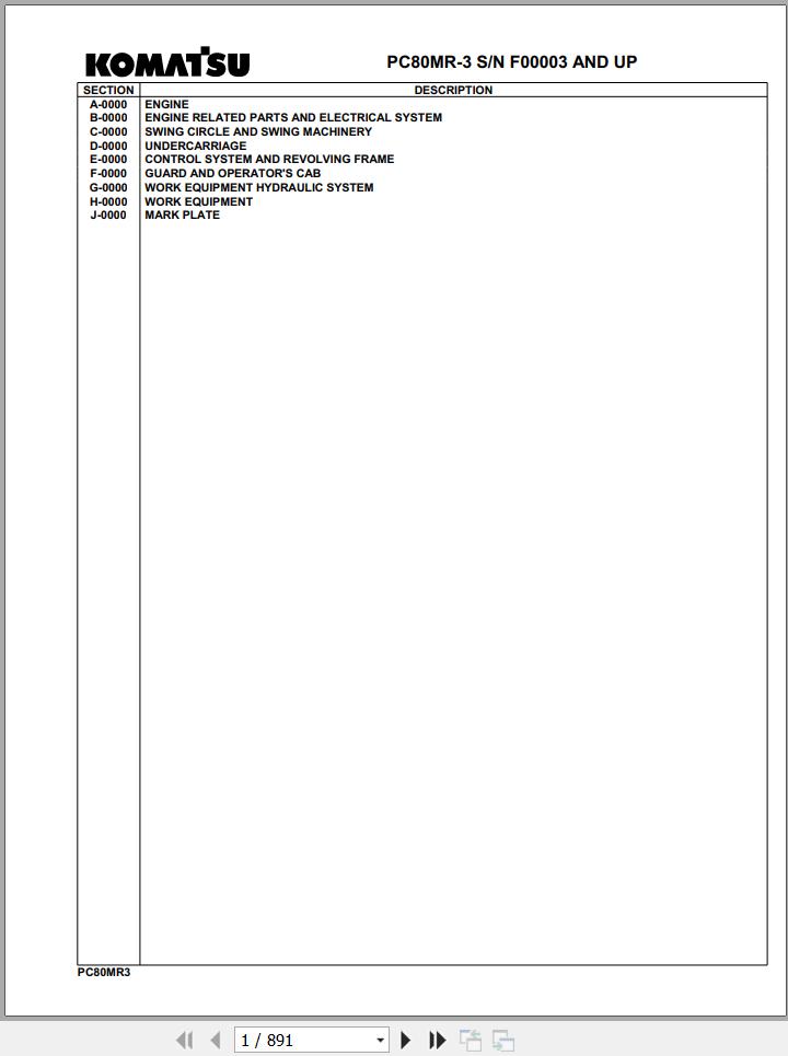 Komatsu PC80MR-3 F00003 And Up Spare Parts Catalog