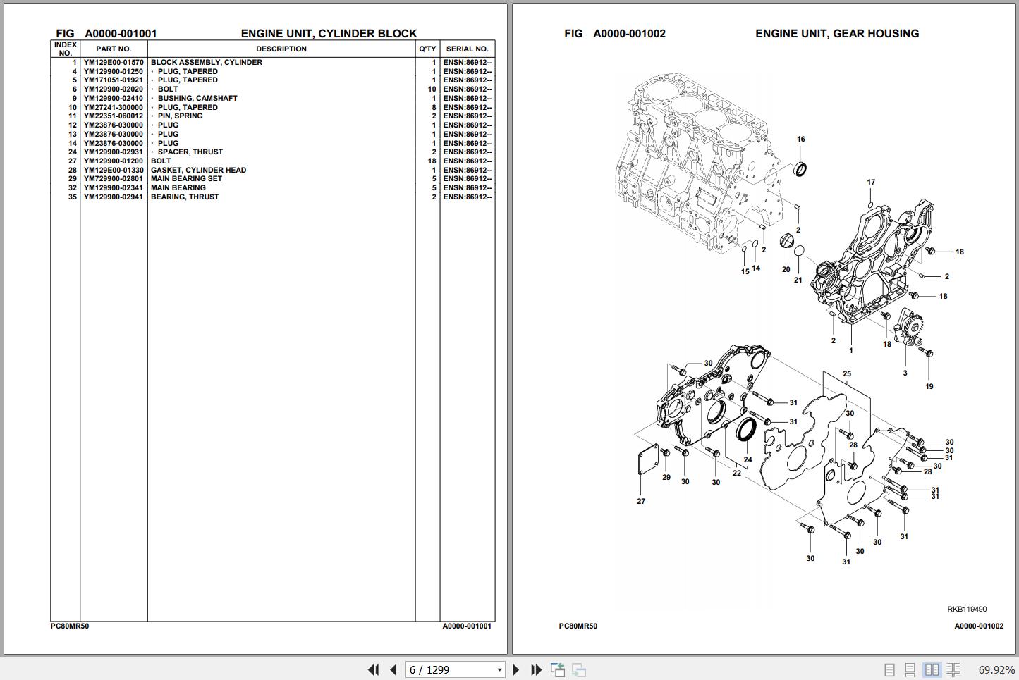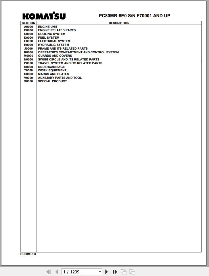 Komatsu PC80MR-5E0 F70001 And Up Spare Parts Catalog