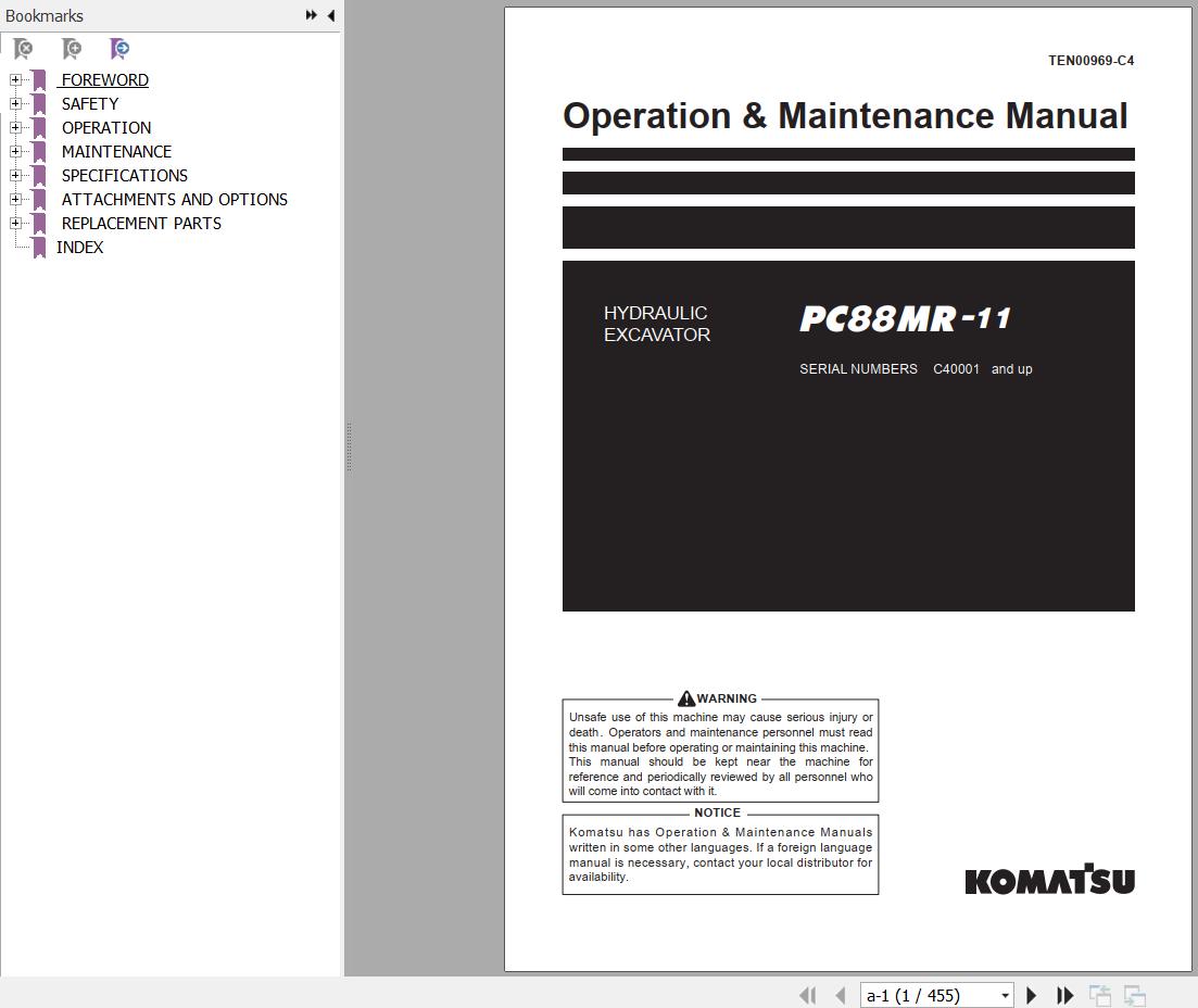 Komatsu PC88MR-11 Operation & Maintenance Manual TEN00969-C4