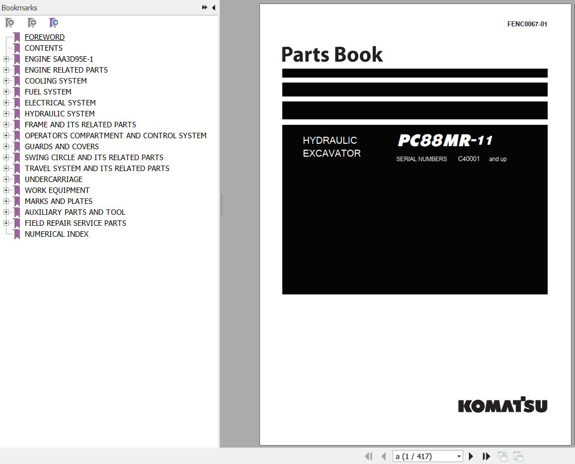Komatsu PC88MR-11 Parts Book FENC0067-01