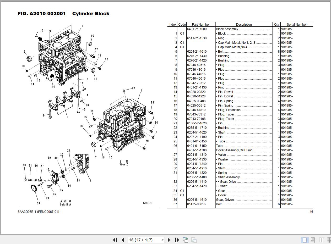 Engine: SAA3D95E-1 Serial No. 901985 and up