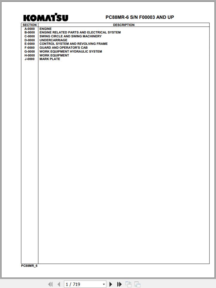 Komatsu PC88MR-6 F00003 And Up Spare Parts Catalog