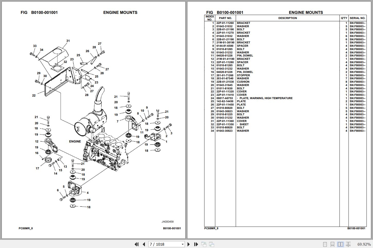 Komatsu PC88MR-8 F80003 And Up Spare Parts Catalog