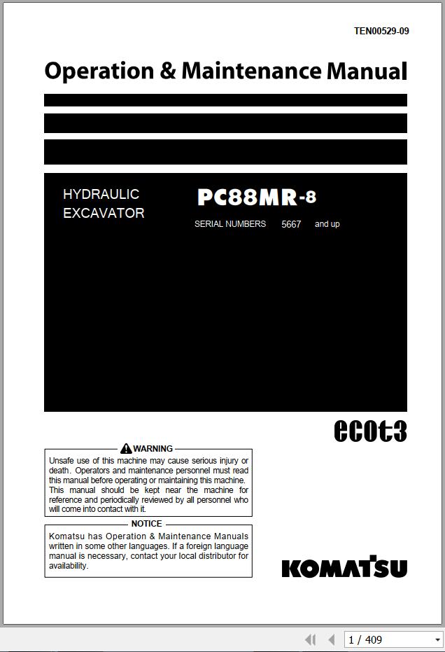 Komatsu PC88MR-8 Operation & Maintenance Manual TEN00529-09