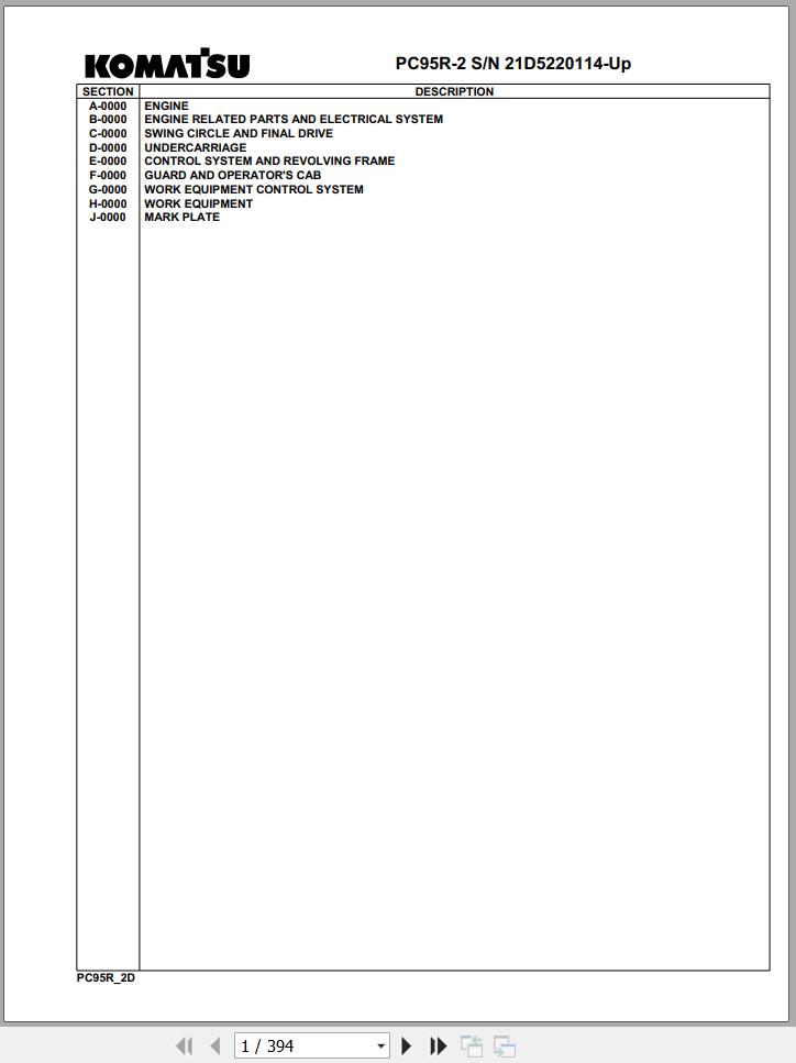 The Bookmarks of Komatsu PC95R-2 21D5220114 Up Spare Parts Catalog: